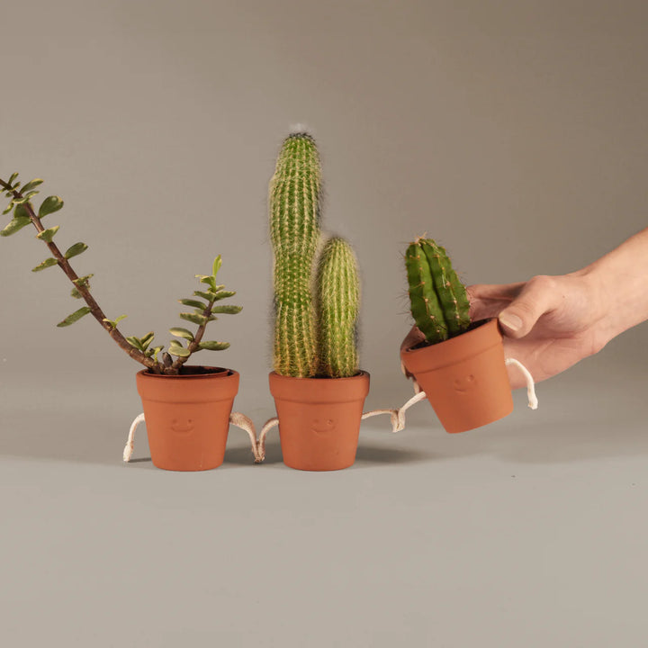 עשויים מקרמיקה איכותית, שלושת העציצים האלה מתחברים זה לזה בידיהם כשמציבים אותם זה ליד זה, כאילו בידיים שלובות.