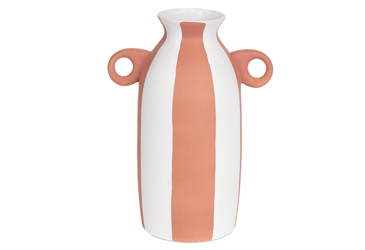 אגרטל פסים עם ידיות טבעת - לבן ורוד