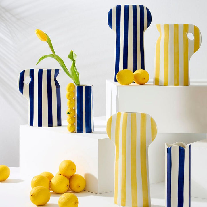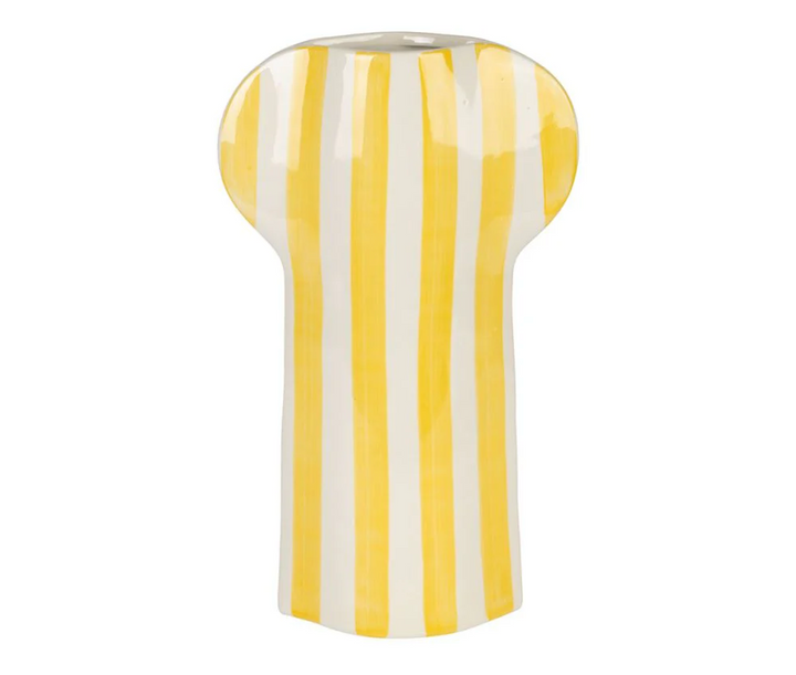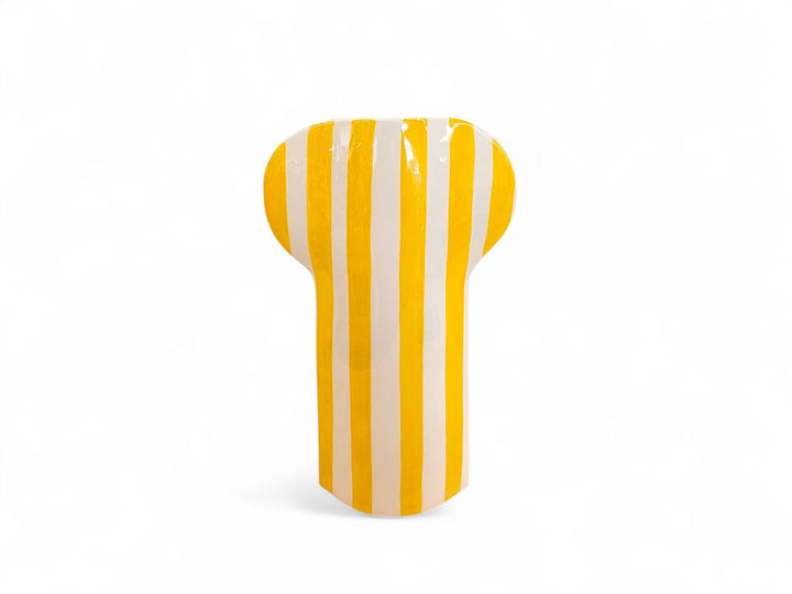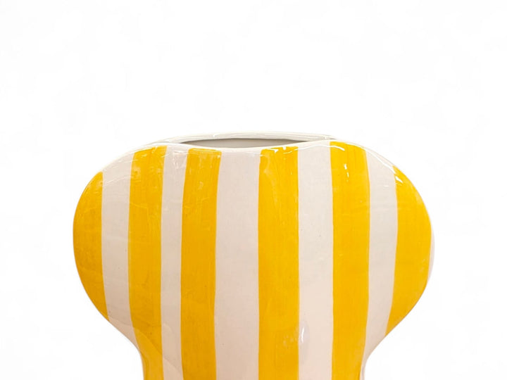 אגרטל קרמיקה מעוצב פסים בגוונים צהוב לבן