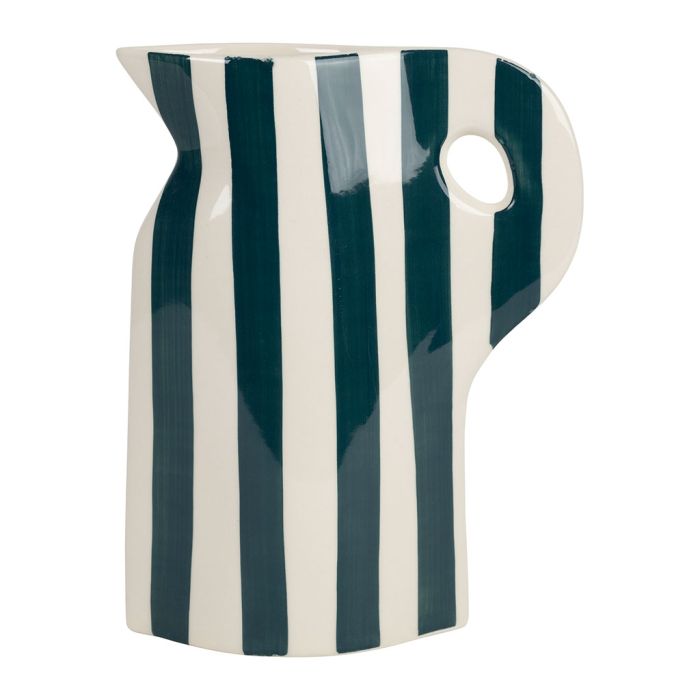אגרטל/קנקן קרמיקה פסים מעוצב - ירוק לבן