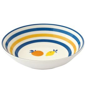 , צבועה ביד בגווני כחול צהוב עם ציורים, משלבת שימושיות ועיצוב. הגימור הקרמי בעבודת יד שלה מוסיף עומק וצבע מעודן לארוחות יומיומיות או מיוחדות.